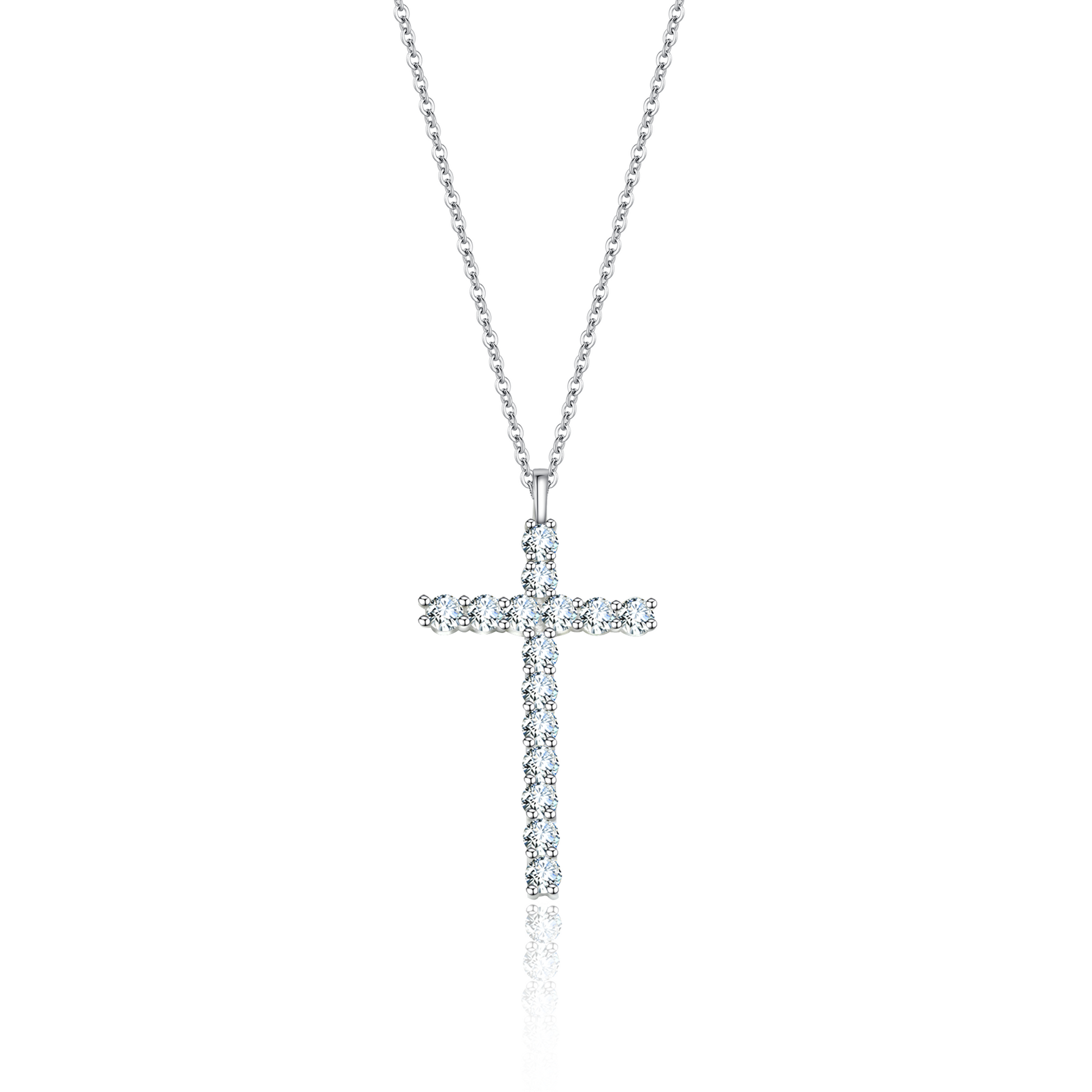 [D&J] Cross 1ct Moissanite Necklace w/ 925 Sterling Silver Chain