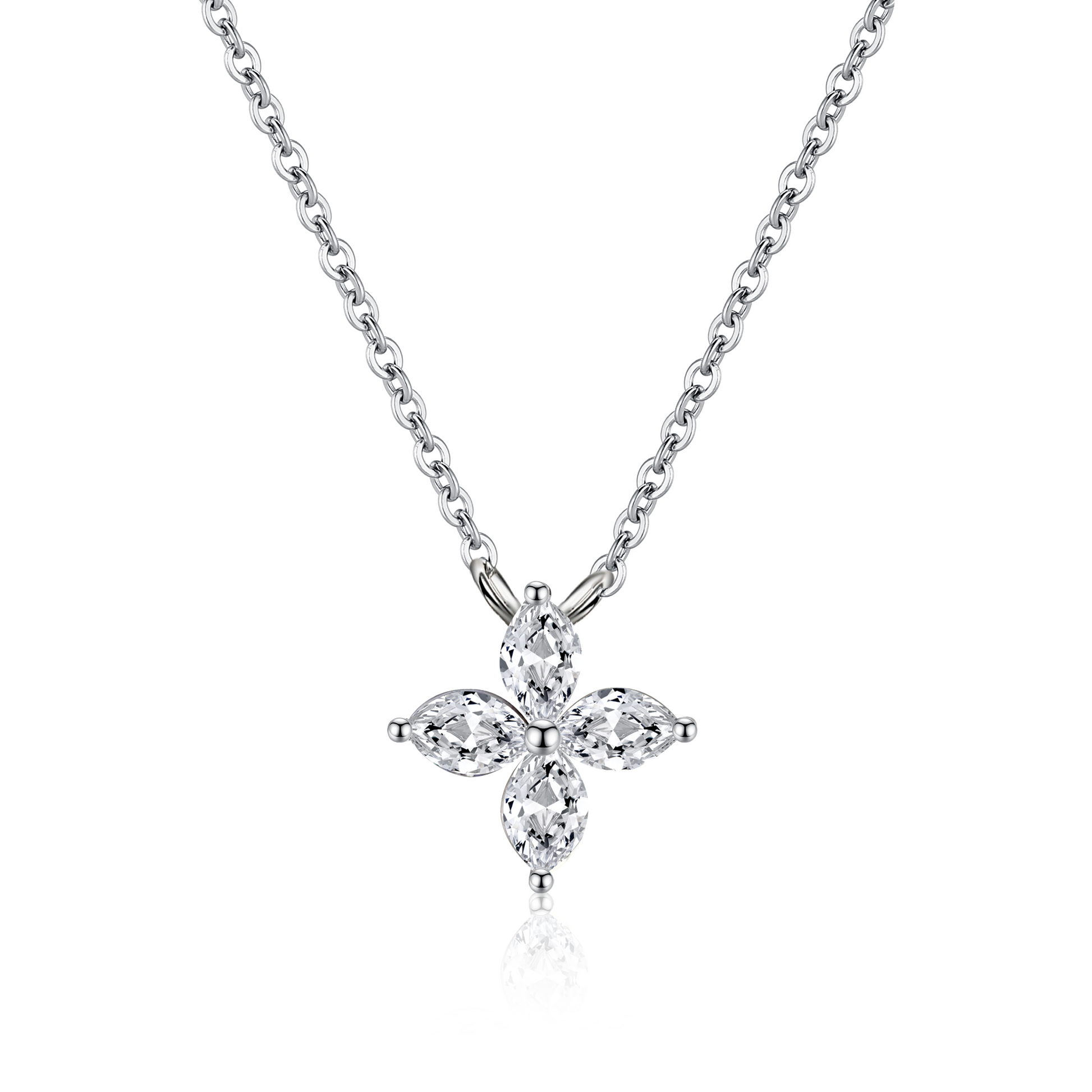 This multi-petal-shaped necklace is combined with 4 Marquise moissanite diamonds.